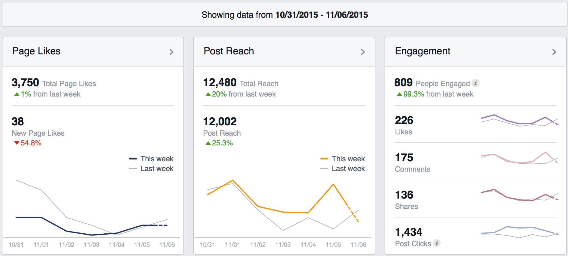 If you aren’t using Facebook page insights or have no idea what it is: listen up! Page insights are the data for your page that make up the bread and butter of what you should be posting. It will show you which of your posts are getting the most engagement, when your audience is on Facebook, and will even provide metrics on how your page is performing.